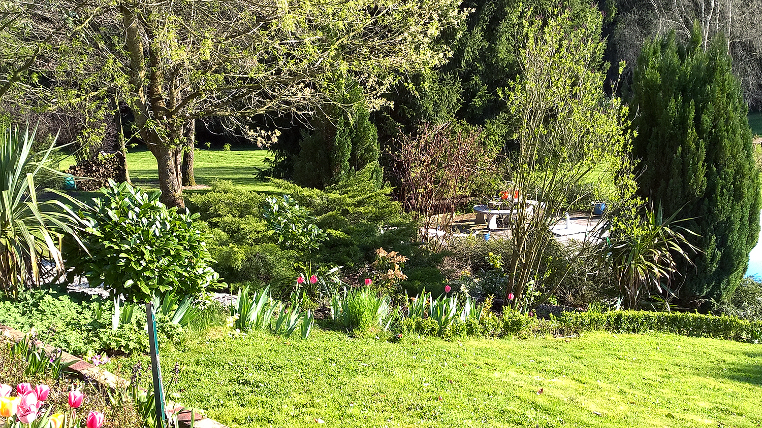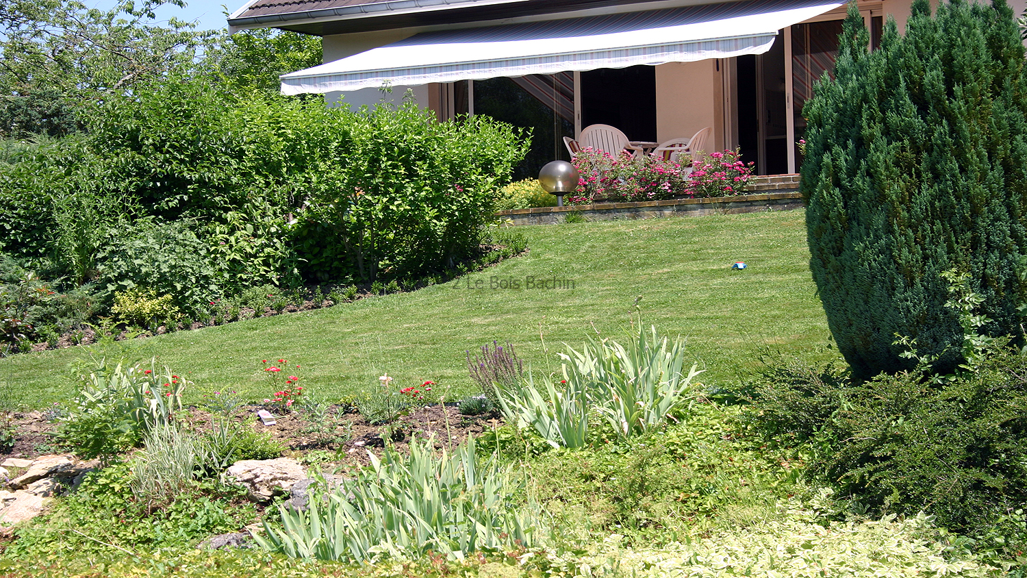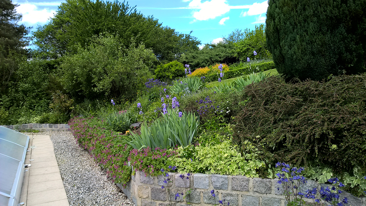 Rockery and garden lawn.