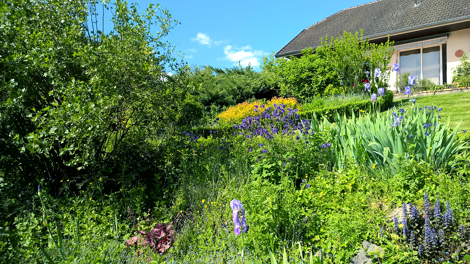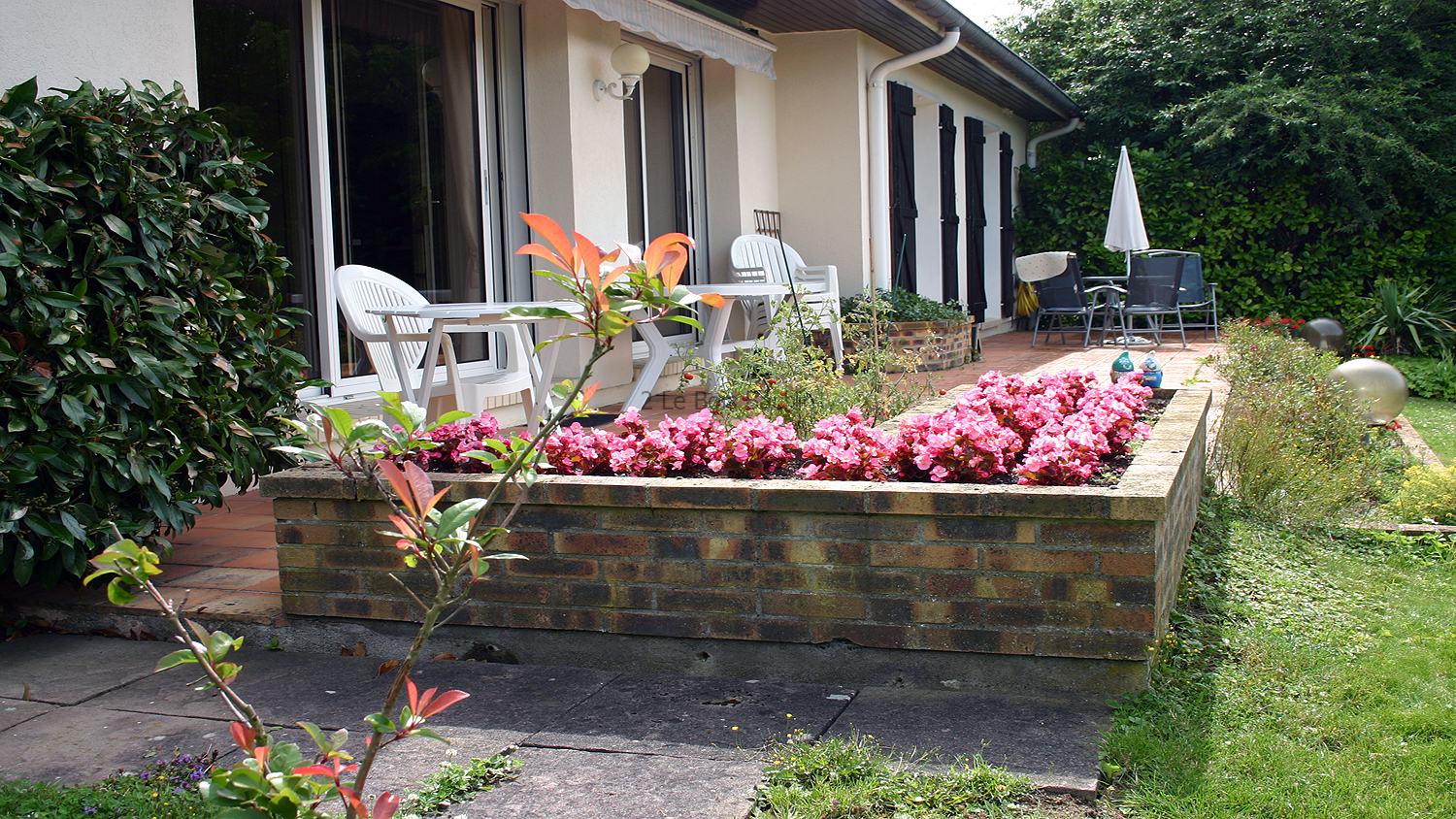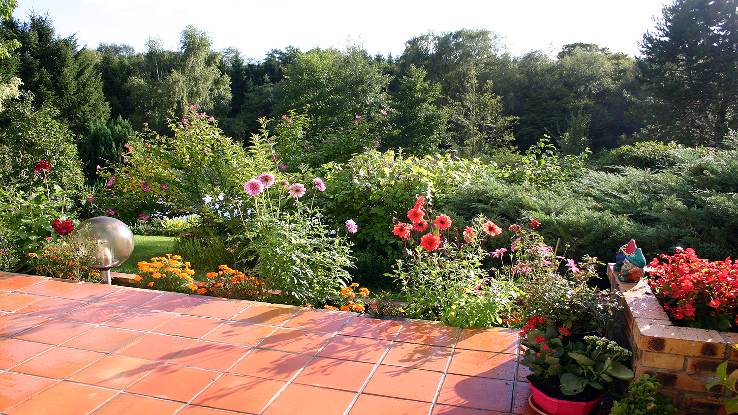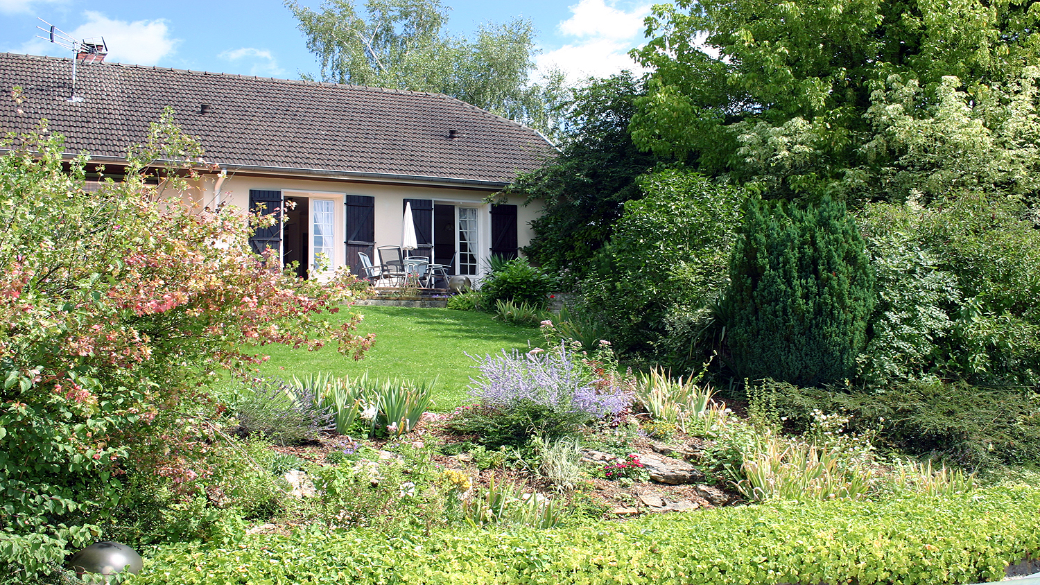 Rockery and garden lawn.