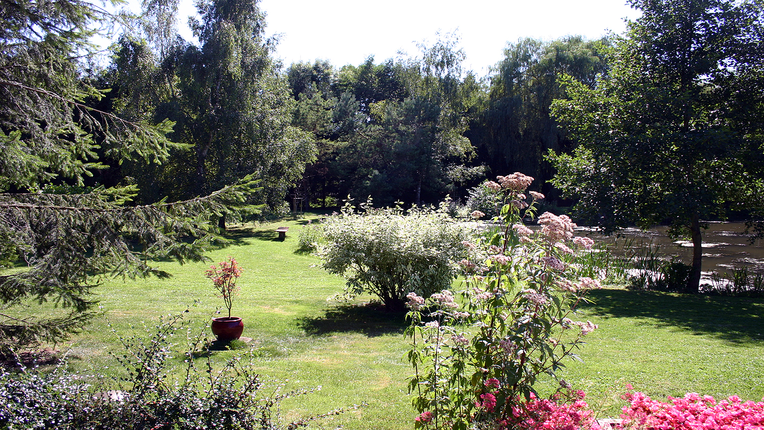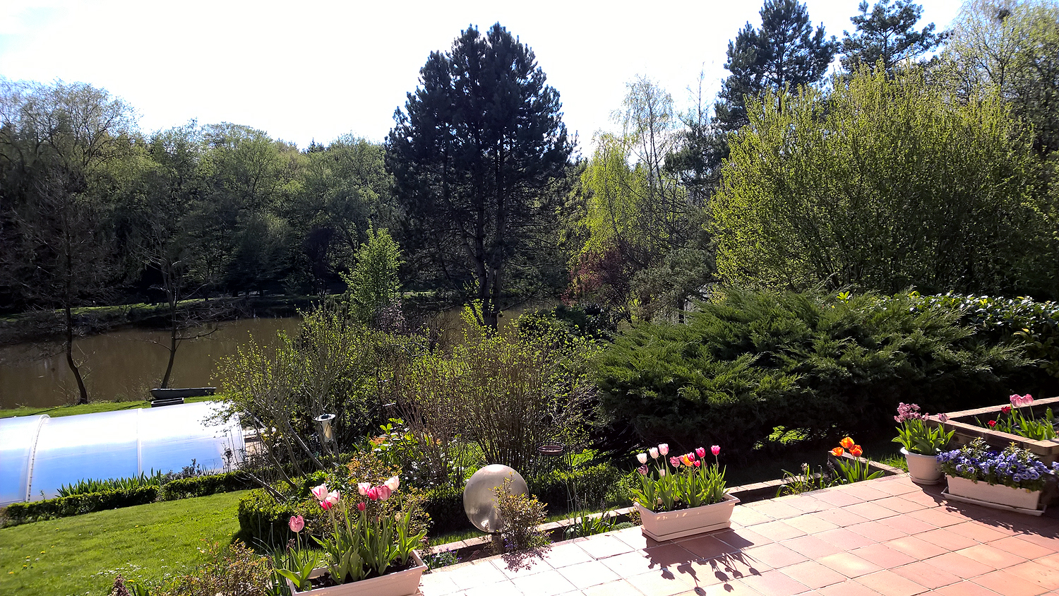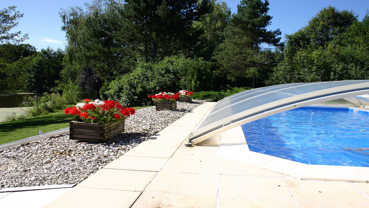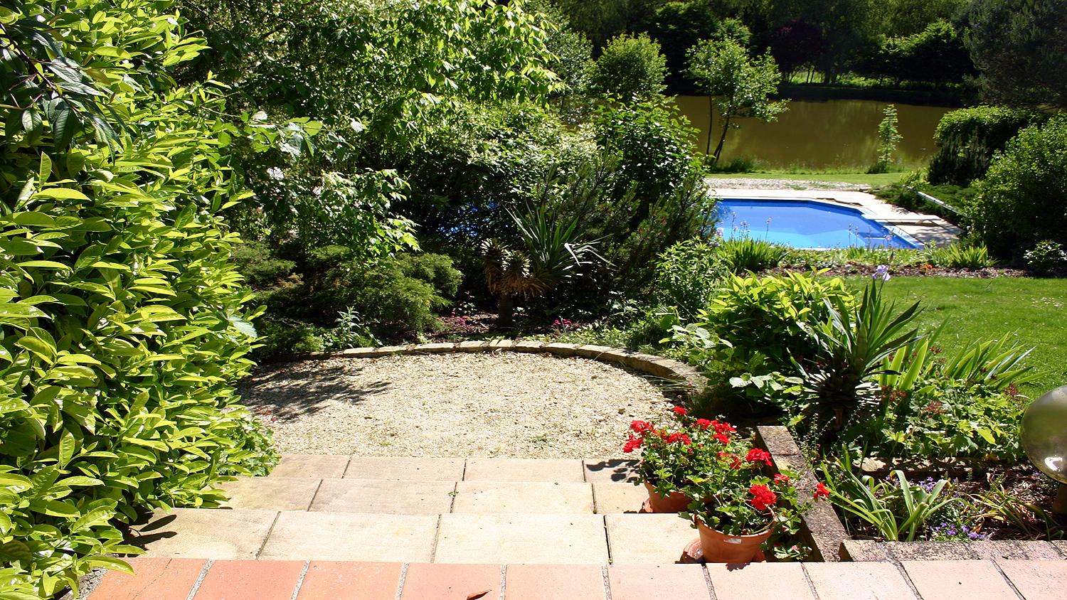 Swimming pool terrace and lakeside.