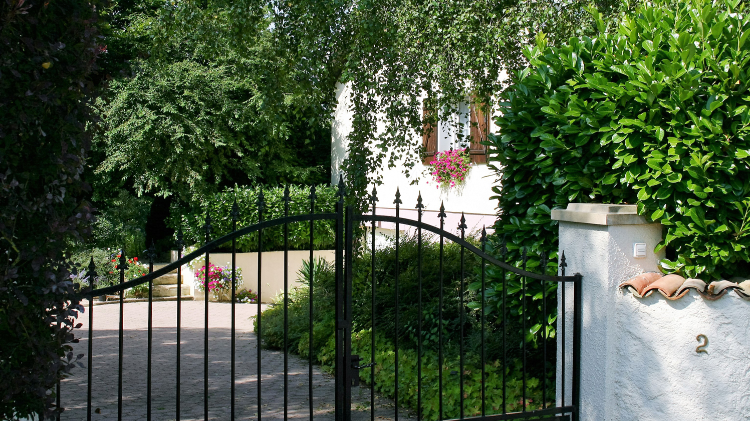 Entrance from parking to garden.