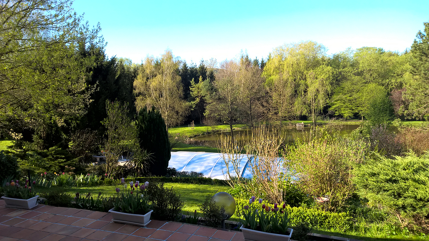 Over the pool to the lake.
